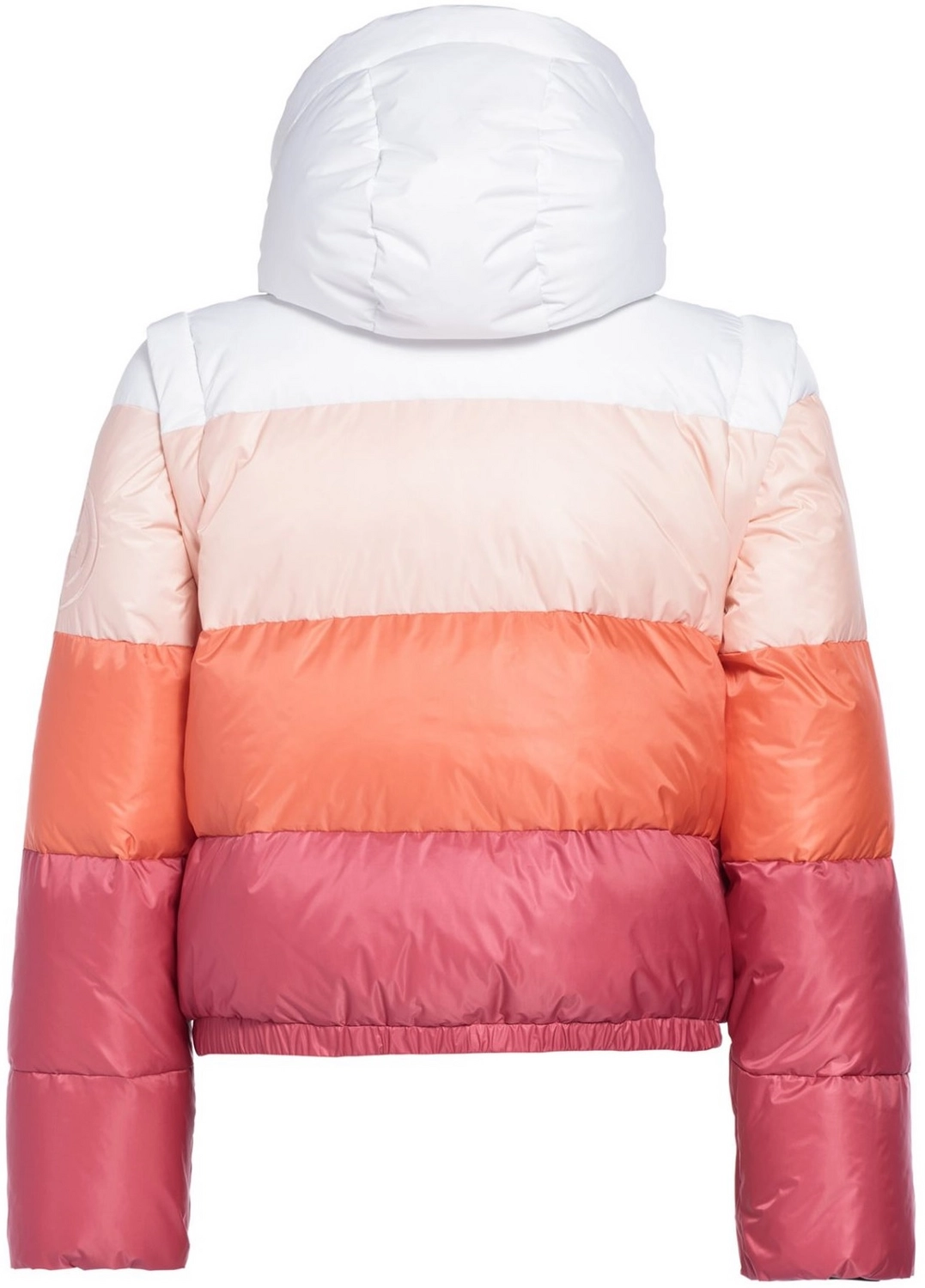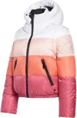 Deze warme en kleurrijke jas is afkomstig van de Bliss serie van het merk Goldbergh. De jas is gemaakt van 100% gerecyclede polyamide wat zeer goed waterdicht is, met een waterkolom van 10.000 mm. De voering is van gedeeltelijk gerecycled polyester en is voorzien van anti odour, wat vervelende geurtjes voorkomt. Daarnaast heeft de is de jas gewatteerd met een heerlijk warme vulling van 90/10 eendendons (90% dons, 10% veren). Bovendien heeft de jas een vaste capuchon en een afneembare sneeuvwanger. De jas heeft eveneens afneembare mouwen, zodat u de jas kunt omtoveren tot een praktische bodywarmer. De mouwen hebben gebreide manchetten, zodat ze goed aansluiten. De jas is voorzien van twee zakken, één binnenzak en een zakje op de mouw voor een skipas. Met het kleurrijke, geblokte patroon is deze jas een echte blikvanger en een musthave voor uw ski- of winteroutfit!