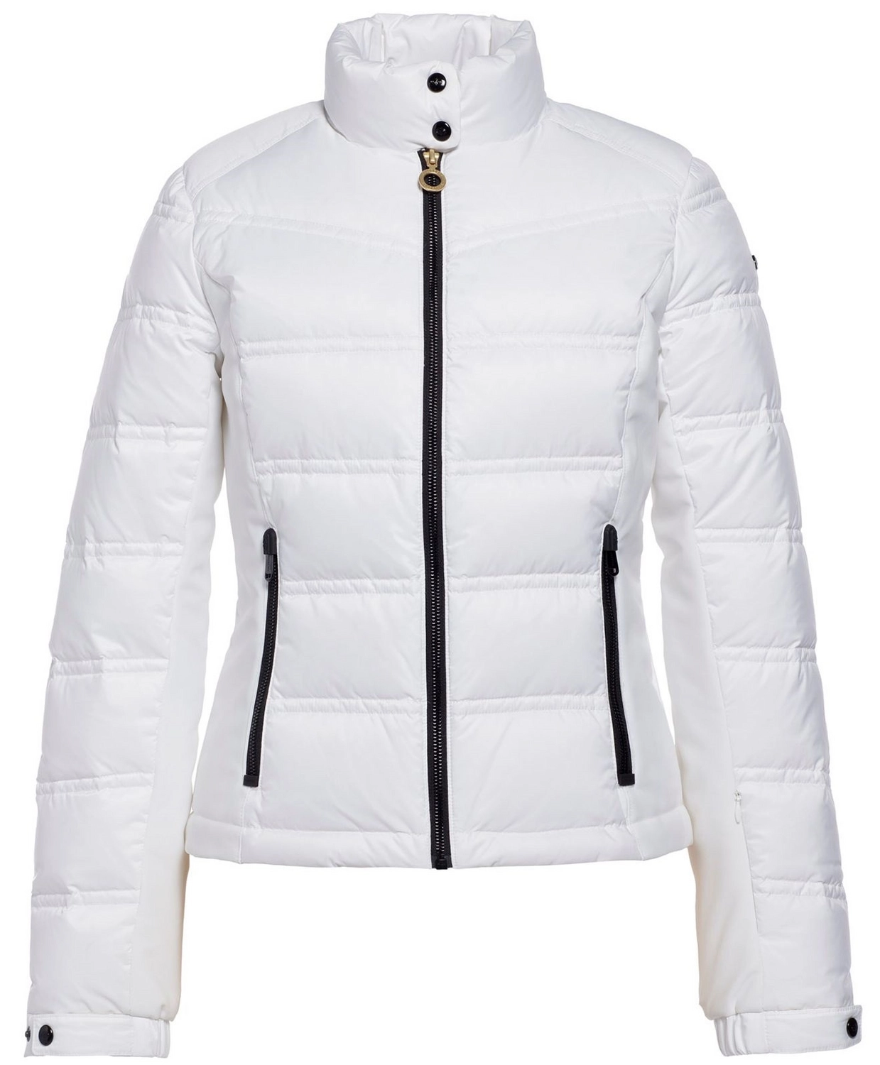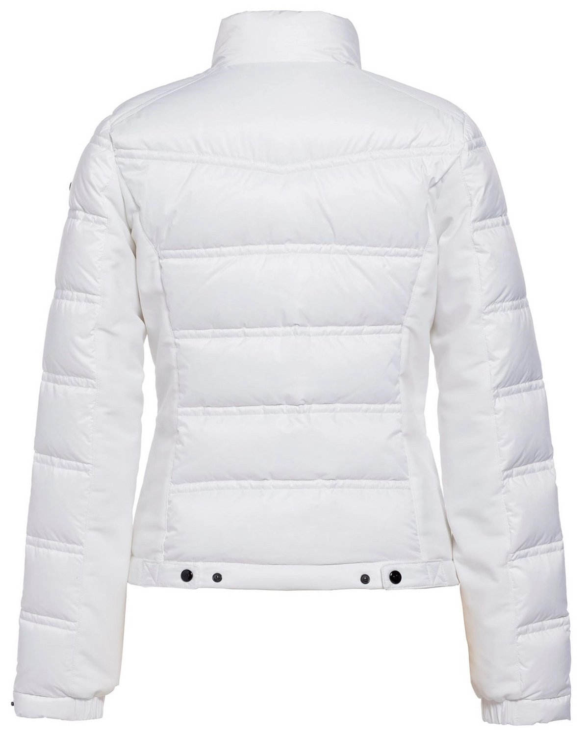De Jas Goldbergh Women Hampton White is een stijlvolle en stoere jas voor dames. De buitenlaag bestaat uit 100% gerecyclede polyamide en 81% polyamide met 19% elastaan, wat zorgt voor een WP van 10.000 en MVP van 10.000 volgens de JIS-normen. Daarnaast is de voering gemaakt van 100% polyamide en bestaat de vulling uit 90/10 ganzendons en 100% polyester. De jas heeft een lengte van 56 cm center back voor maat 38 en een slim fit pasvorm. Verder heeft de jas 2 zakken, 1 binnenzak, verstelbare manchetten en stretch softshell details op de zijkant en onderarmen. Deze prachtige Goldbergh jas valt op maat en is geschikt voor dames.