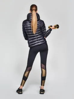 Deze jas komt uit de serie Nadia van het merk Goldbergh. Deze slim fit jas is ademend en waterdicht. Hij is ingezet met stretch softshell stukken aan de zijkant van het lichaam, de onderarm, en manchetten. De jas is afgewerkt met anti-geur en bevat een elastische band onderaan, bij de capuchon, en de manchetten. De jas met een gouden ritssluiting bevat daarnaast ook een binnenzak met ritssluiting, onzichtbare ritsen bij de voorzakken en een onzichtbaar sleutelzakje met ritssluiting onderaan de linker mouw.