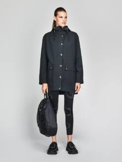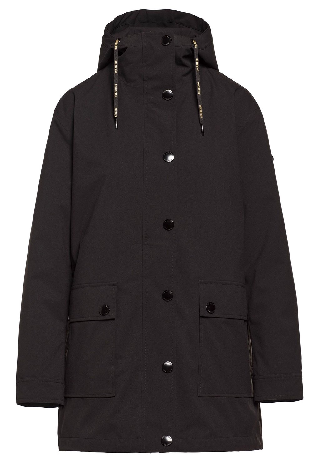 Deze jas komt uit de serie Odelia van het merk Goldbergh. Deze softshell jas met een casual look heeft een middelhoge pasvorm en is volledig waterdicht en ademend. De jas is volledig gevoerd en heeft een anti-geurafwerking op de voering. Voorzien van een capuchon met trekkoord en een waterdichte ritssluiting met een stormflap is deze jas geschikt tegen weer en wind. De zoom is verstelbaar, verder heeft de jas klepzakken met drukknoppen en ook drukknoppen bij de manchetten. De drukknoppen zijn voorzien van het Goldberg merklogo. Ook op de achterkant is het Goldbergh logo te vinden in grote letters op de bovenrug.