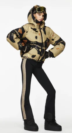 Het hoogstaande merk Goldbergh is wereldwijd erkend door zijn premium kwaliteit en vakmanschap. Luxe, kwaliteit en mode is waar het bedrijf voor staat. Ze integreren mode en sportkleding op de best mogelijke manier, zo ook in deze prachtige Precious Chain jas. De jas is gemaakt van 100% gerecycled polyester en gevuld met eendendons en -veren. Daarnaast heeft de jas een draagband aan de binnenzijde, een vaste capuchon, afneembare sneeuwvanger en een ademend vermogen. Met de Precious Chain jas gaat u stijlvol en vrouwelijk de piste af!