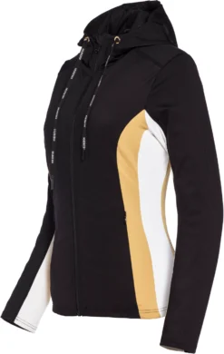 Deze jas is afkomstig uit de Ziva serie van het merk Goldbergh. Het materiaal van deze Slim Fit jas bestaat uit 75% Polyamide en 25% elastaan met een jersey voering. Dit zorgt voor een sneldrogende en vochtregulerende jas die vervelende geurtjes voorkomt. Daarnaast is de jas voorzien van powerstretch interlock, een capuchon met aantrekkoord en een glimmende zwarte ritssluiting. U kunt de Ziva herkennen aan de zijpanelen met kleurvakken en het grote gouden Goldbergh logo op de achterzijde.