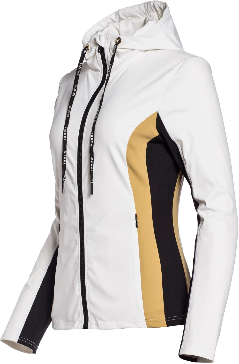Deze jas is afkomstig uit de Ziva serie van het merk Goldbergh. Het materiaal van deze Slim Fit jas bestaat uit 75% Polyamide en 25% elastaan met een jersey voering. Dit zorgt voor een sneldrogende en vochtregulerende jas die vervelende geurtjes voorkomt. Daarnaast is de jas voorzien van powerstretch interlock, een capuchon met aantrekkoord en een glimmende zwarte ritssluiting. U kunt de Ziva herkennen aan de zijpanelen met kleurvakken en het grote gouden Goldbergh logo op de achterzijde.