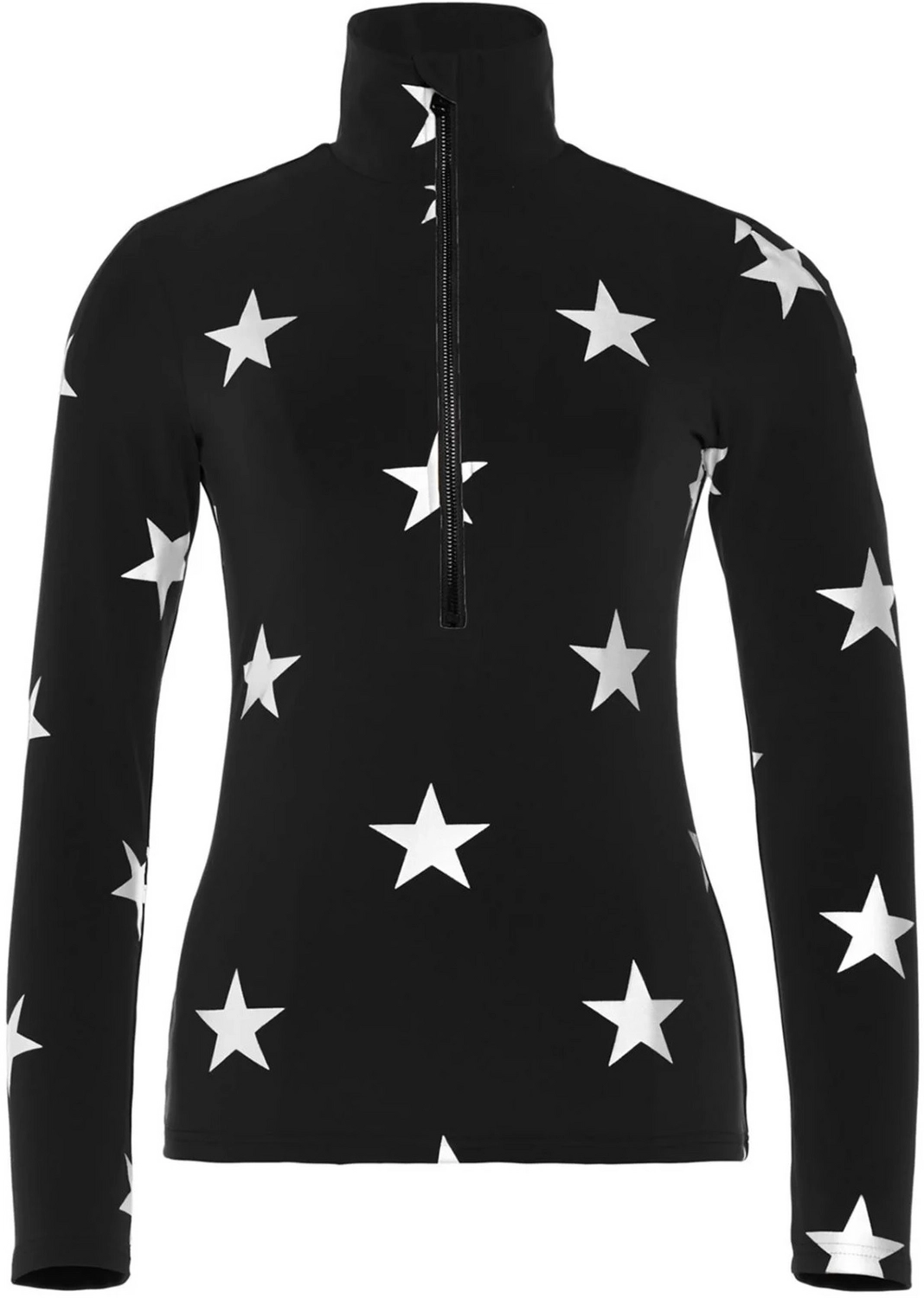Deze leuke skipully is afkomstig van de Sky serie van het merk Goldbergh. De skipully is gemaakt van powerstretch interlock van een hoogwaardige mix van polyester en elastaan, wat vochtregulerend, sneldrogend en geurwerend is. Daarnaast is de skipully voorzien van een langere glanzend zwarte 1/2 rits aan de voorzijde die doorloopt tot in de nauwsluitende kraag. Hierdoor blijft uw nek beschermd tegen de kou. De skipully is geheel bedrukt met een stijlvol sterrenpatroon en is een fraaie toevoeging aan iedere skioutfit!