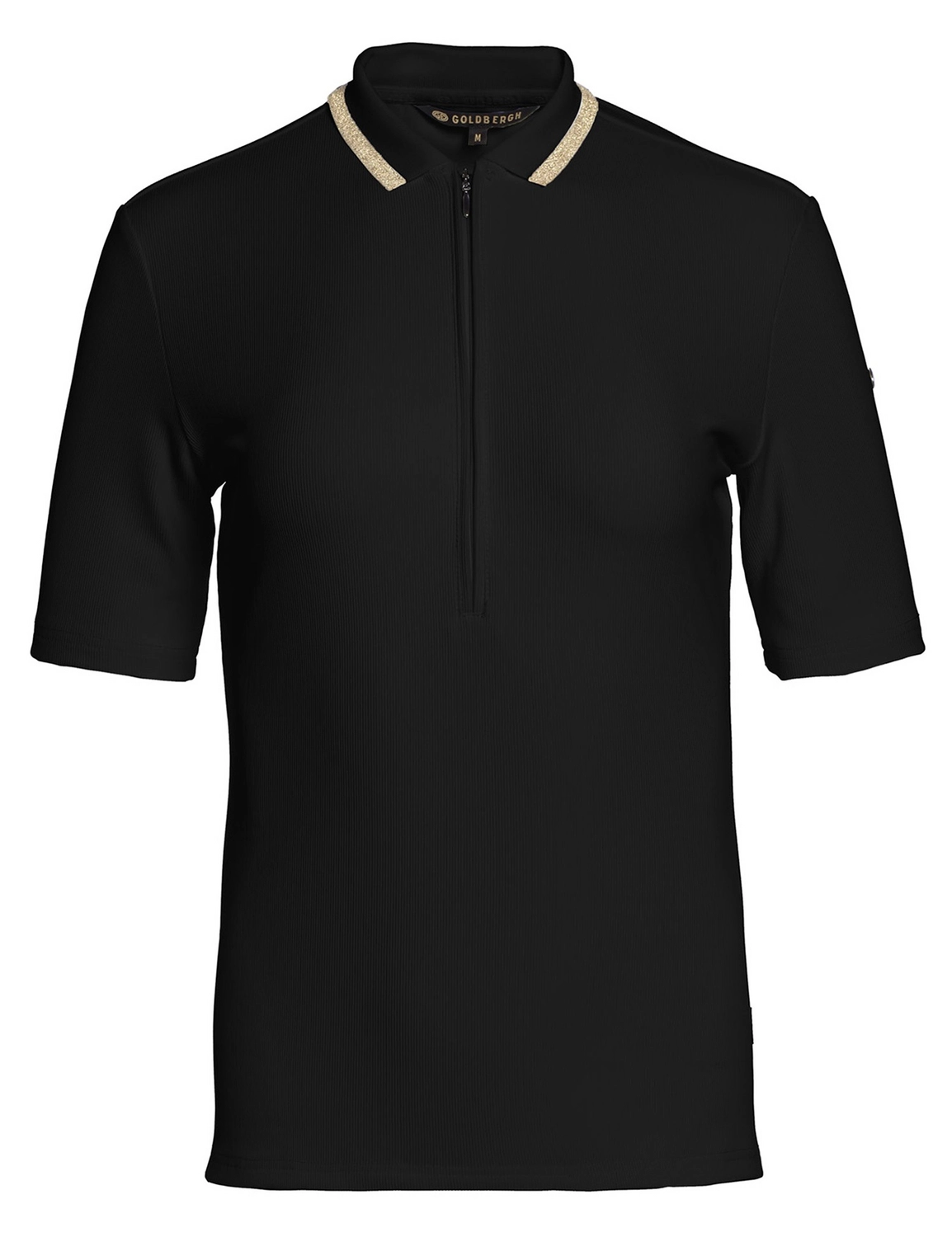 Dit t-shirt is afkomstig uit de Cassia serie van het merk Goldbergh. Het slim fit t-shirt is vervaardigd uit 80% polyamide en 20% elastaan, wat het t-shirt sneldrogend, vochtregulerend en vrij van geurtjes maakt. Daarnaast is dit t-shirt voorzien van een 2×2 gestructureerde rib, een verborgen 1/2 ritssluiting en ventilatie-openingen aan de zijkant. U kunt de Cassia herkennen aan het geweven merklabel aan de zijkant en de ribpolokraag met goudkleurige lurex rand. Kortom, een perfect shirt om mee te sporten!