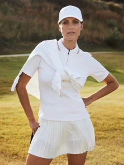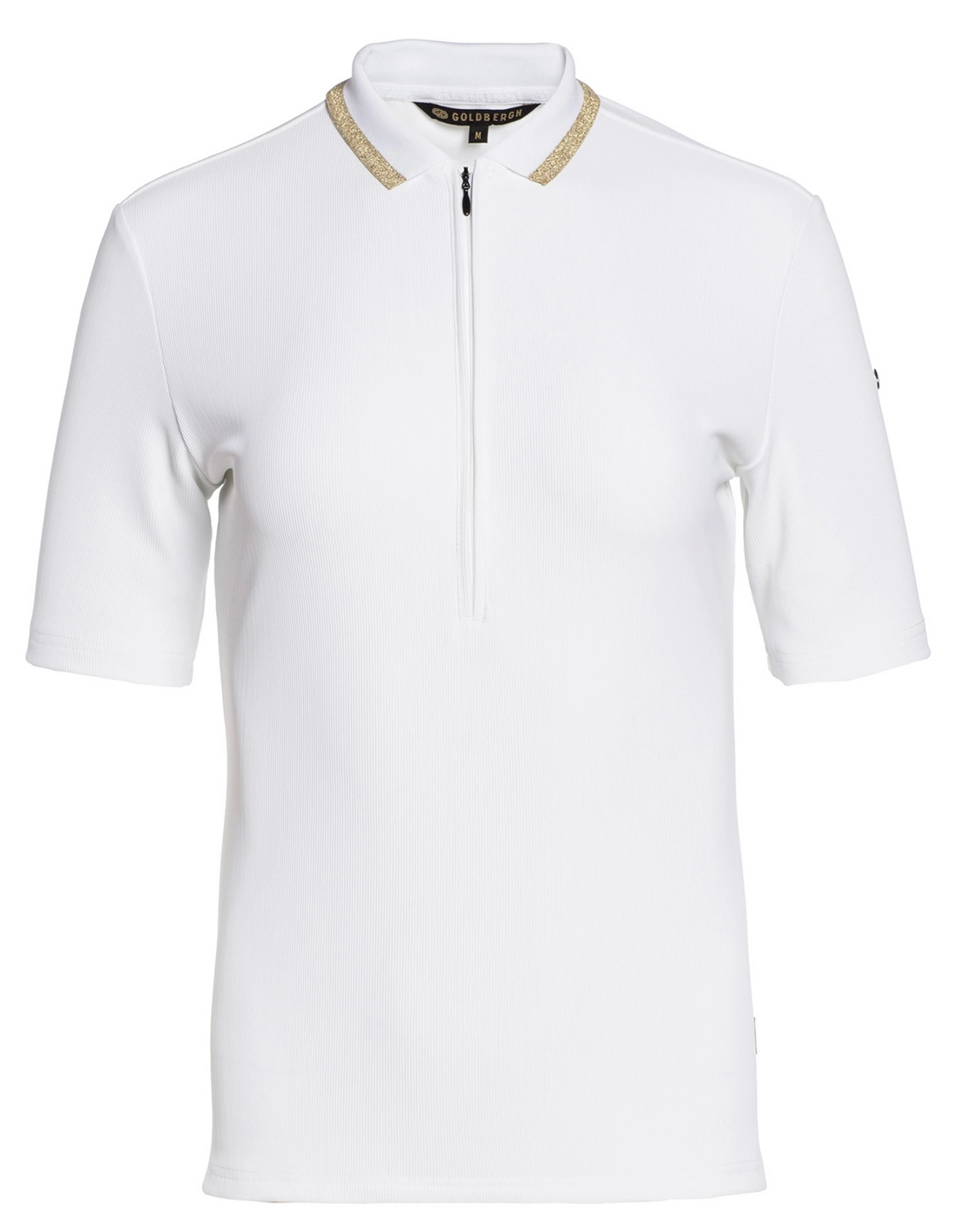 Dit t-shirt is afkomstig uit de Cassia serie van het merk Goldbergh. Het slim fit t-shirt is vervaardigd uit 80% polyamide en 20% elastaan, wat het t-shirt sneldrogend, vochtregulerend en vrij van geurtjes maakt. Daarnaast is dit t-shirt voorzien van een 2×2 gestructureerde rib, een verborgen 1/2 ritssluiting en ventilatie-openingen aan de zijkant. U kunt de Cassia herkennen aan het geweven merklabel aan de zijkant en de ribpolokraag met goudkleurige lurex rand. Kortom, een perfect shirt om mee te sporten!