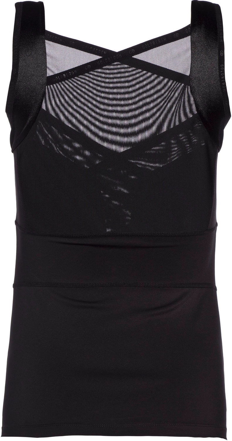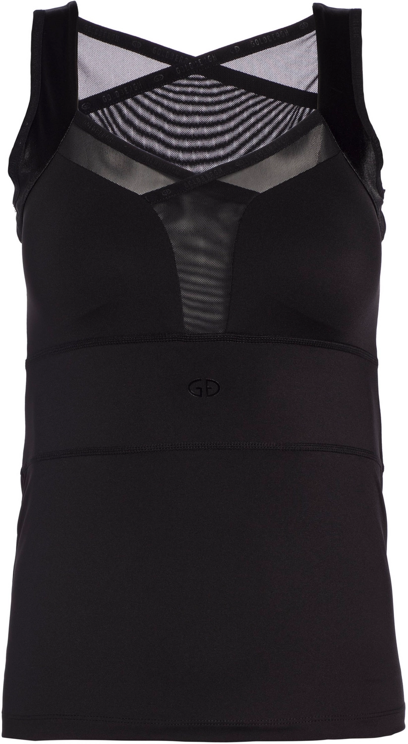 Deze tanktop is afkomstig uit de Astor serie van het merk Goldbergh. Het materiaal van de tanktop met Tight Fit pasvorm bestaat uit 75% polyamide en 25% elastaan, wat zorgt voor een sneldrogende en vochtregulerende stof die vervelende geurtjes voorkomt. Daarnaast is de tanktop voorzien van powerstretch interlock, uitneembare cups, schouderbandjes van satijnjersey en gekruiste powermesh panelen voor extra steun.