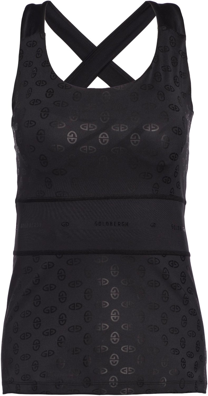 Deze tanktop is afkomstig uit de Destiny serie van het merk Goldbergh. Het materiaal van de Slim Fit tanktop bestaat uit 76% polyester en 24% elastaan, wat zorgt voor een sneldrogende en vochtregulerende stof die vervelende geurtjes voorkomt. Daarnaast is de tanktop voorzien van Powerstretch interlock, stevige bandjes in dezelfde stof en een gekruiste powermesh laag op de rug. Verder heeft de tanktop een binnen BH van jersey met vaste cup en verstelbare elastische bandjes.