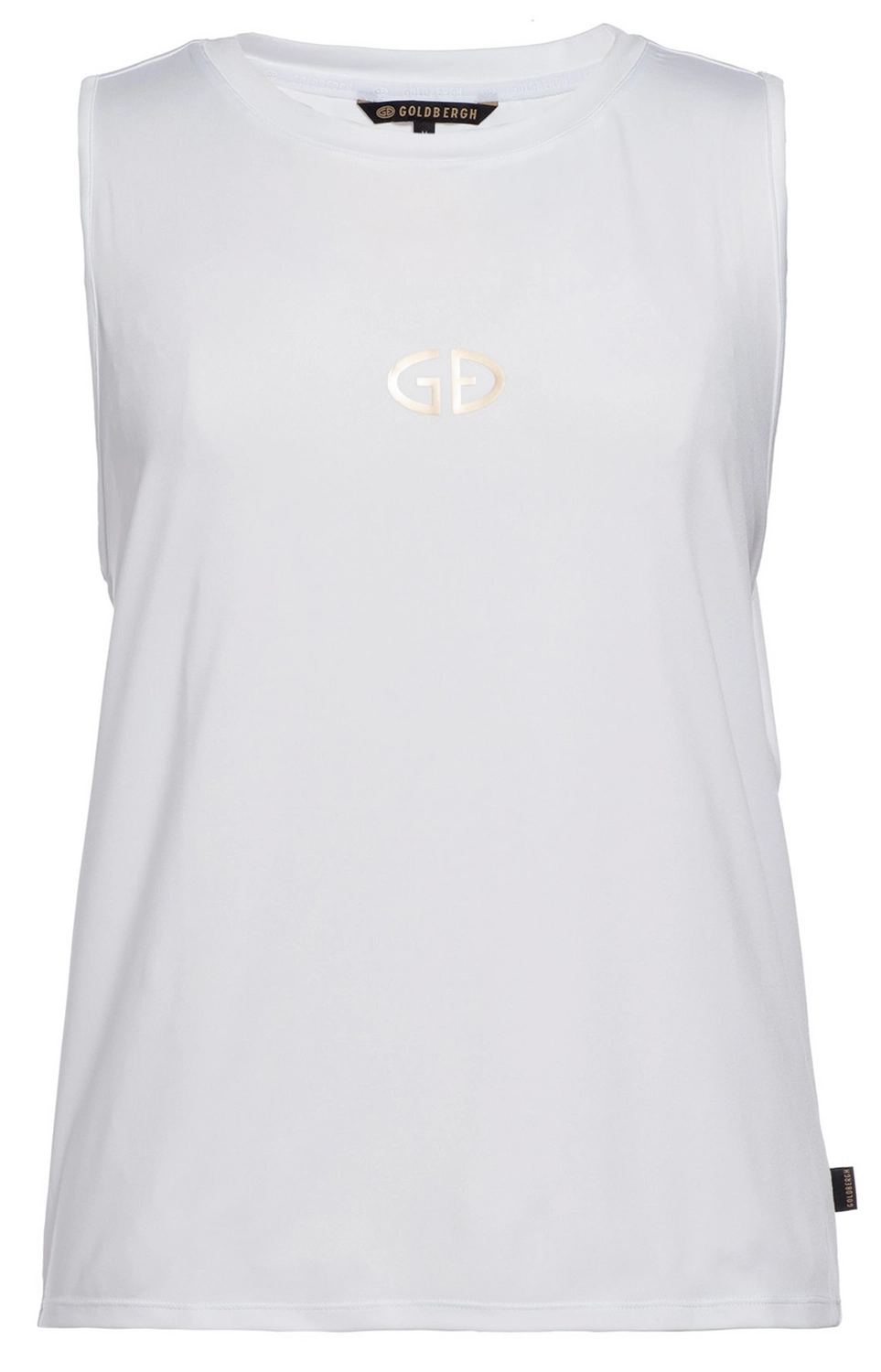 Deze tanktop is afkomstig uit de Gigi serie van het merk Goldbergh. De top is vervaardigd uit 90% gerecycled polyester en 10% elastaan, wat zorgt voor een vochtregulerende en sneldrogende stof die vervelende geurtjes voorkomt. De lichtgewicht top is mouwloos en heeft een loose fit. U kunt deze Gigi tanktop herkennen aan het GB logo op de borst en het geweven merklabel aan de zijkant.