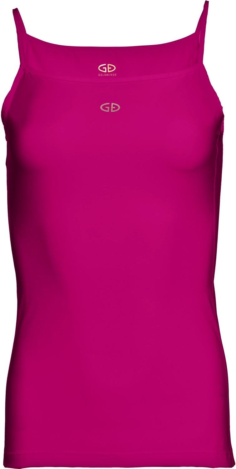 Deze tanktop is afkomstig uit de Gilda serie van het merk Goldbergh. De Slim Fit tanktop bestaat uit 56% polyamide en 44% elastaan, wat zorgt voor een sneldrogende en vochtregulerende stof die vervelende geurtjes voorkomt. Daarnaast is de tanktop voorzien van powerstretch interlock en bandjes in dezelfde stof. U kunt de Gilda herkennen aan een geweven merklabel aan de achterzijde.