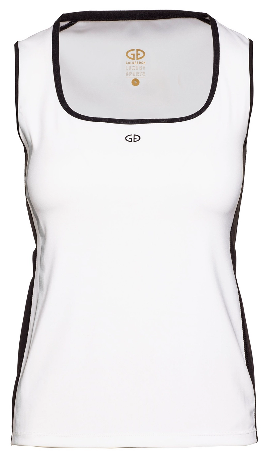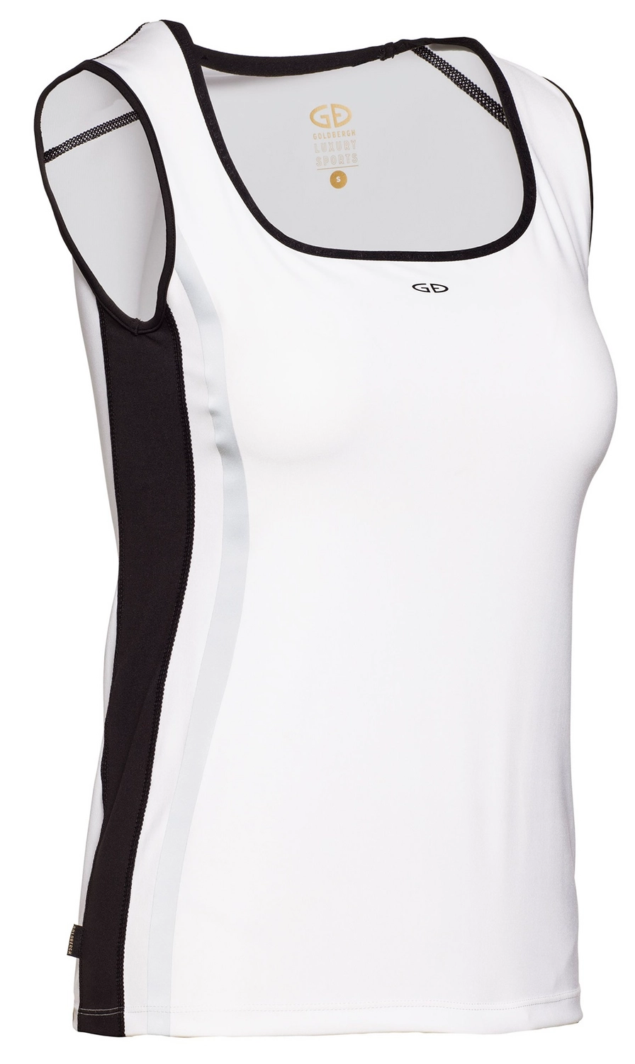 Deze tanktop komt uit de serie Jelma van het merk Goldbergh. Deze tanktop is ideaal tijdens de sporttraining. Hij is anti-geur, heeft een vochtregulatie en is sneldrogend. Deze tanktop met een strakke pasvorm is gemaakt van 76% polyester en 24% elastaan en heeft een powerstretch interlock. De zijpanelen zijn van satijn jersey en de top bevat een reflecterende zilverfolietape op de linker voorkant. Langs de halslijn bevindt er zich een boord met het GB logo. Deze tanktop matcht met de Goldbergh Jena tennisrok.
