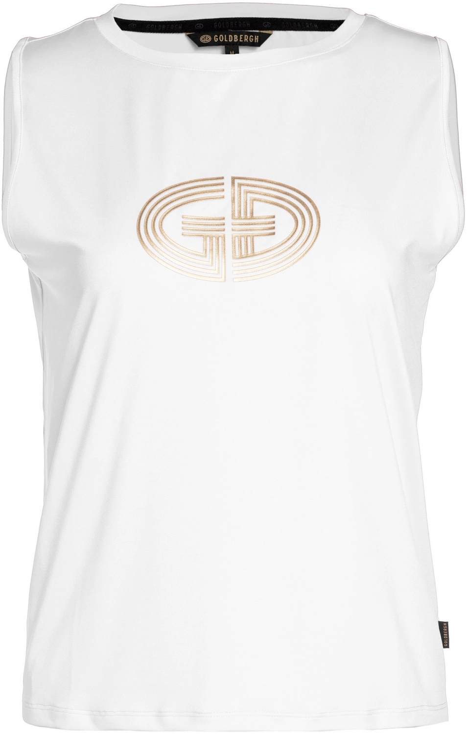 Deze tanktop is afkomstig uit de Reyna serie van het merk Goldbergh. Het materiaal van de Wide Fit tanktop bestaat uit 90% gerecycled polyester en 10% elastaan, wat zorgt voor een sneldrogende en vochtregulerende stof die vervelende geurtjes voorkomt. U kunt deze lichtgewicht tanktop herkennen aan een goudkleurig Goldbergh logo op de borst en een geweven merklabel aan de zijkant.
